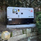 This home standby generator installation for a Pramac GDW35 diesel unit in West Pennant Hills featured careful planning and precise execution to fit the sloped backyard terrain. The team conducted a site inspection to select the ideal spot for ventilation and access, then prepared the area by forming and pouring a solid concrete slab on the terraced level.