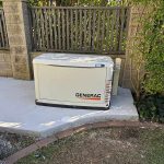Once cured, the generator was placed and leveled. Our plumber connected the natural gas, and our electrician wired it to the transfer switch, tested, and commissioned the system. The job was completed neatly and professionally over a two week period (due to cement curation) in a compact, integrated setup.