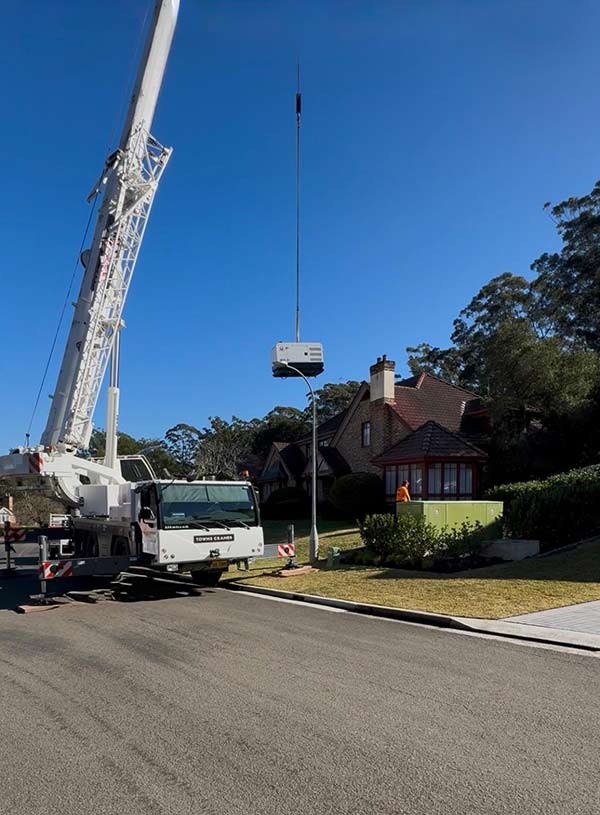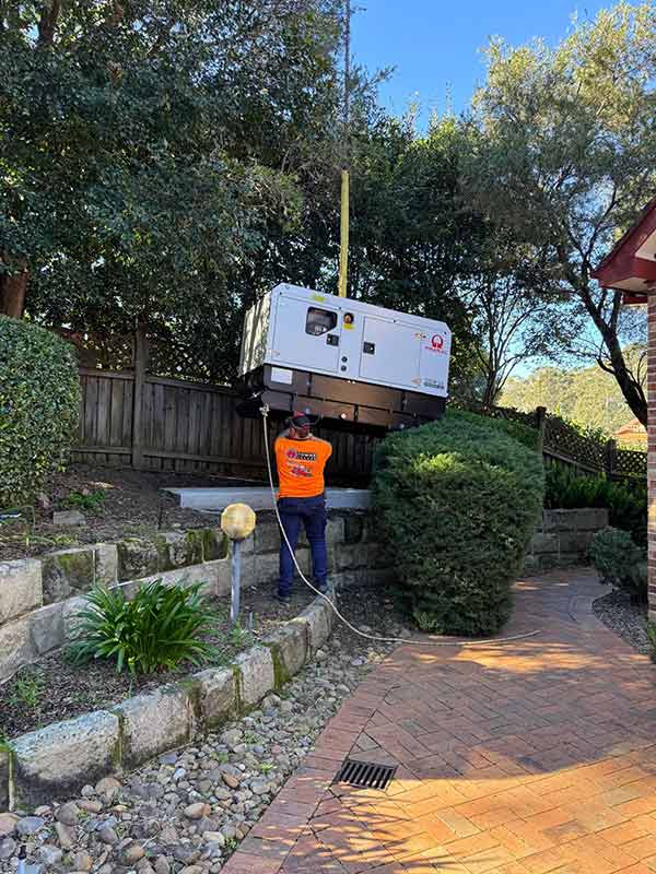 The generator was delivered and carefully lifted into position using a crane, ensuring safe placement and levelling on the slab. The plumber connected the diesel supply, and the electrician wired the unit to the transfer switch, performed full testing, and commissioned the system for automatic operation. The job was completed neatly and professionally, resulting in a clean, well-integrated setup that blends and fits well with the landscaped garden.